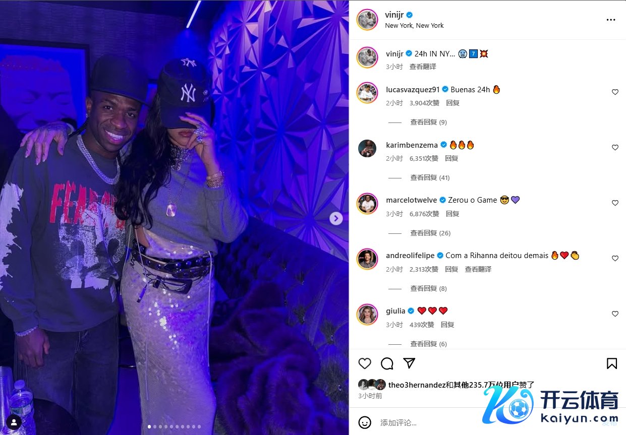 12月27日讯 维尼修斯更新社媒动态,晒出我方在纽约度假的相片。 维尼修斯哄骗少顷的休赛期赶赴纽约度假,并不雅看NBA比赛,他在外交媒体上晒出相片,其中包括与蕾哈娜、卡梅隆-安东尼、文班亚马的合照,配文:“在纽约的24个小时。” 本赛季于今,维尼修斯为皇马出战21场比赛,打进13球,送出9记助攻。 体育录像/图片